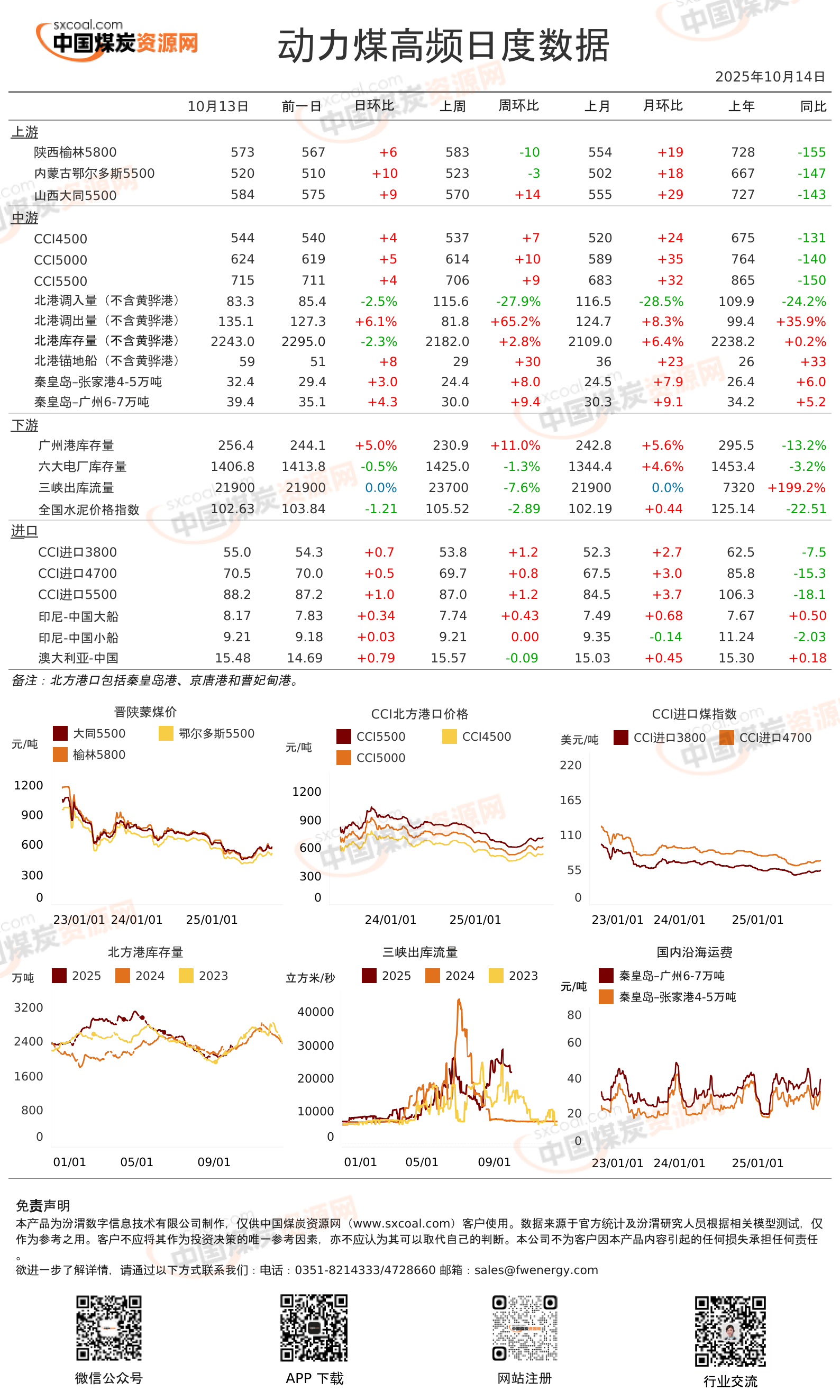 動力煤日度數(shù)據(jù)跟蹤(2025.10.14)價格動力煤全國煤炭中國煤炭資源網(wǎng)2025.10.14 09:12:00字數(shù) 33閱讀數(shù)192動力煤市場重要數(shù)據(jù)跟蹤,涵蓋主產(chǎn)地、中轉(zhuǎn)港、下游及進口市場價格、庫存、運費等。中國煤炭資源網(wǎng)出品,未經(jīng)許可,不得轉(zhuǎn)載。